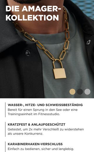 Ankerkette mit Schlossanhänger Silberfarben Carter Amager  Ankerkette mit Schlossanhänger Goldfarben Carter Amager  Ankerkette mit Schlossanhänger Gunmetal Farbe Carter Amager