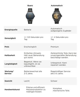 QUARZ- ODER AUTOMATIKUHREN: WELCHE SOLLTEST DU WÄHLEN?