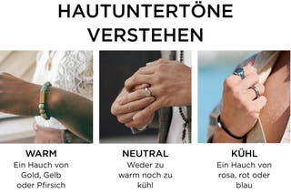Brauchst du noch mehr Hinweise? Schmuck ist ein weiterer Anhaltspunkt. Sieht Gold an dir mega aus? Dann hast du wahrscheinlich warme Untertöne. Lässt Silber dich strahlen? Du bist vermutlich kühl. Neutrale Hauttypen? Sehen bei beidem gut aus.