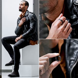 Ausgesuchte Produkte: Pearce Recta Stahlring, Pearce Pyramis Vintage und schwarzer Ring & Pearce Crux Vintage und schwarzer Ring