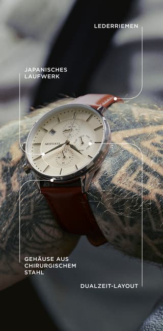 Mit Datum, Wochentag, 24-Stunden- und Dualzeit-Zifferblatt