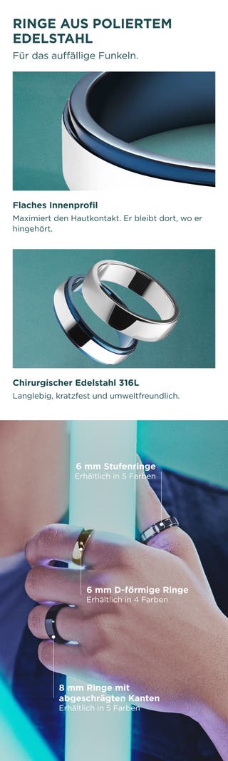 Farbe auswählen - Ferrum | 8 mm Ring aus poliertem, silberfarbenem Edelstahl mit abgeschrägten Kanten