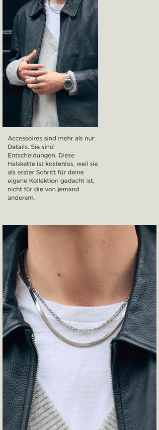 Du musst dir über Accessoires nicht zu viele Gedanken machen. Fang einfach mit der Halskette an, die wir für alle Gelegenheiten entworfen haben.