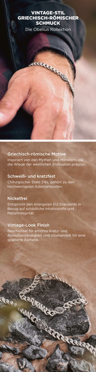 Dieses Armband ist aus 316L-Edelstahl gefertigt und hat eine Panzerkette mit silberstahlfarbenem Finish. Die Glieder sind sauber gearbeitet und eng verbunden, so entsteht eine schlanke, unaufdringliche Silhouette. Eine kleine runde Plakette mit dezenter Gravur setzt einen dezenten Akzent. Das Gesamtbild wirkt klar und modern mit leichtem industriellen Einschlag.