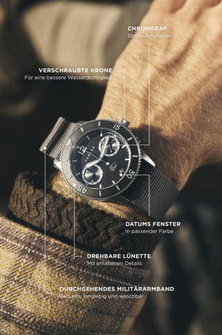 Doppelt gewölbtes Saphirglas und zwei durchgehende Militärarmbänder
