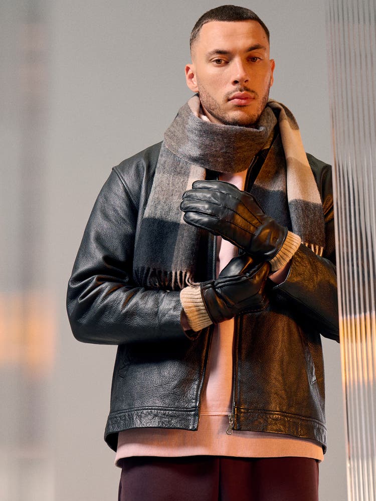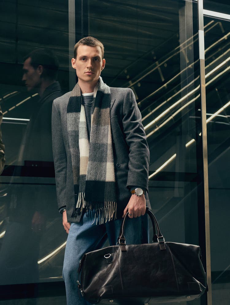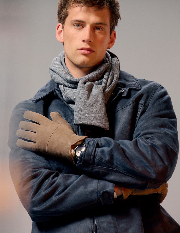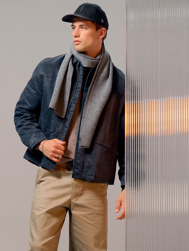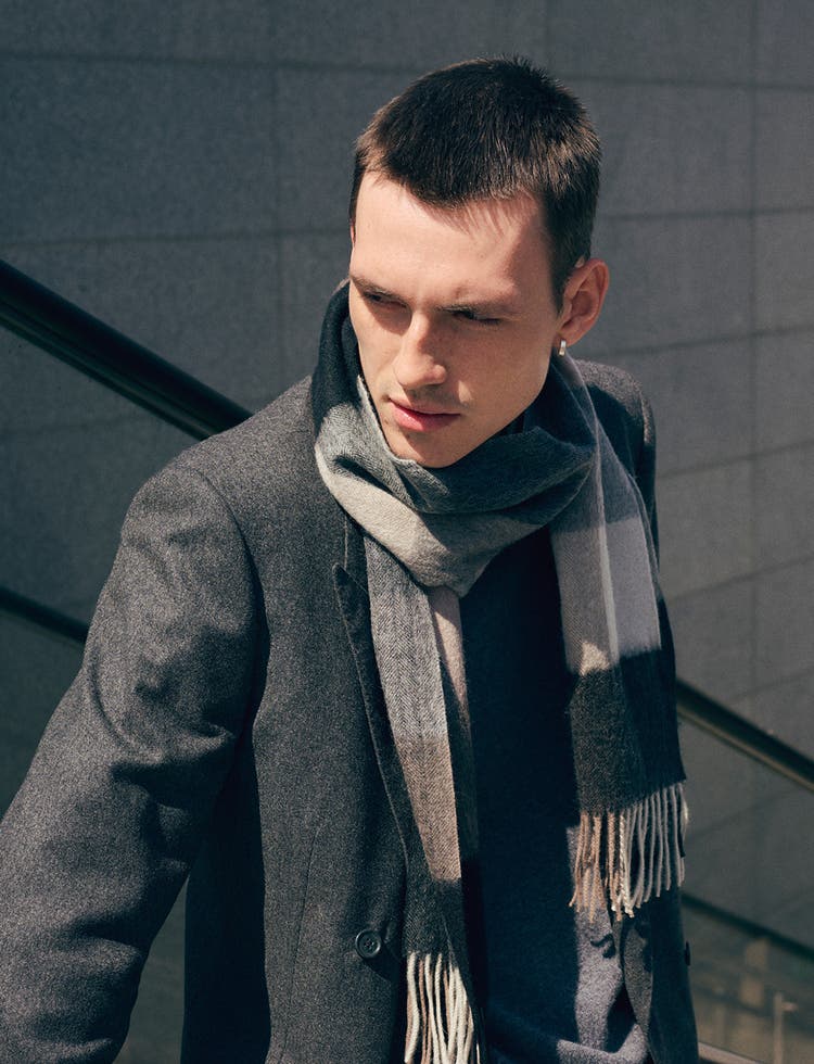 Heutzutage findest Du Männerschals in so ziemlich jeder erdenklichen Art, Farbe, Druck und Stoffgewicht. Einige Stoffe, wie Merinowolle, Baumwolle, Leinen und Kaschmir, werden aus Naturfasern hergestellt, die von natürlichen Pflanzen oder Tieren stammen. Andere, wie Acryl, Viskose, Polyester und Elasthan, sind industriell hergestellte synthetische Materialien. Naturfaserstoffe sind oft luxuriöser und angenehmer zu tragen, während synthetisches Gewebe mitunter langlebiger und schmutzabweisender ist. Was Deine Schalkollektion betrifft, ist es am besten, eine große Vielfalt an Stilen, Farben und Stoffen zu haben, aus der Du bei der Zusammenstellung Deines täglichen Ensembles wählen kannst.