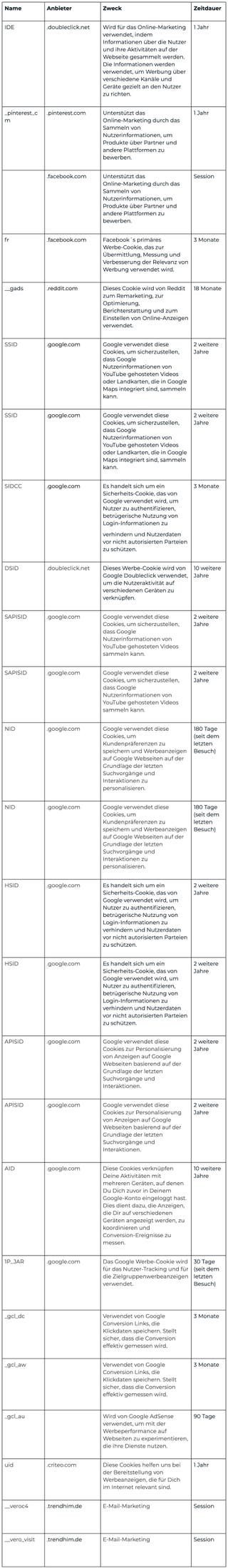 Wir verwenden Tracking, statistische und technische Cookies. Um Dich bestmöglich zu Informieren, haben wir die meisten Cookies unten aufgelistet: